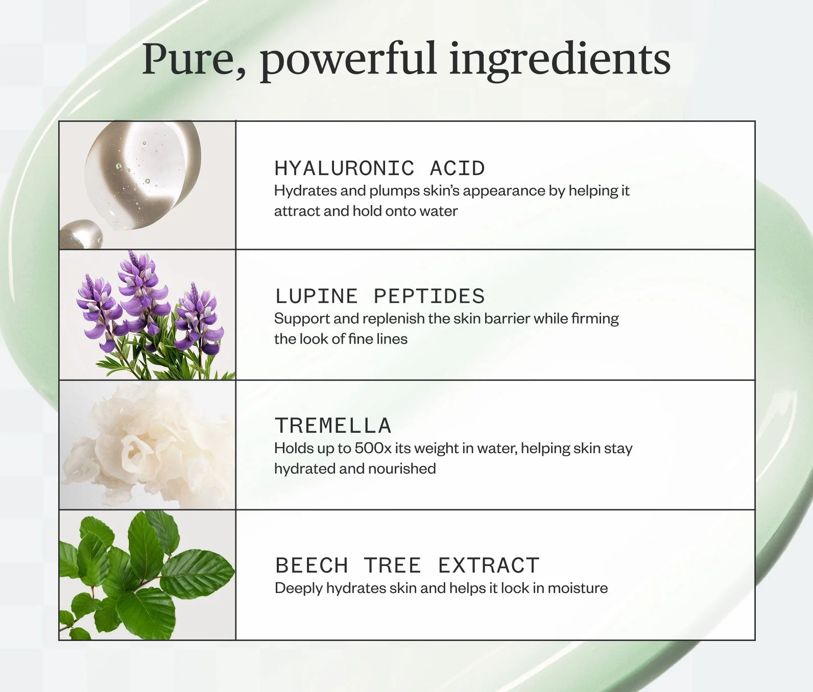 Tap into deep-rooted hydration. This thirst-quenching serum draws from a deep wellspring of natural moisture to deliver concentrated hydration straight to dehydrated skin. Made with Hyaluronic Acid and hydrating forest actives, it helps skin look plump, firm, and full to the brim with moisture and bounce.